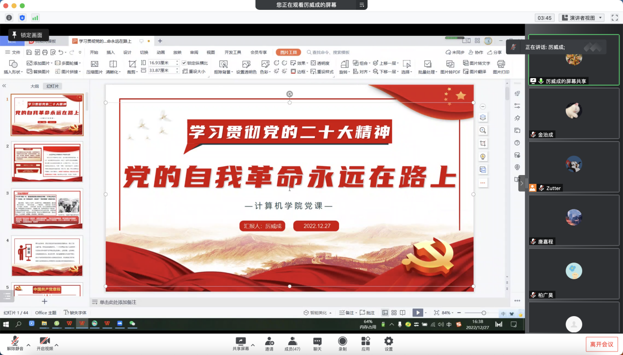 12月27日下午,伟德国际bevictor1946研究生第二党支部通过腾讯会议开展“学习贯彻党的二十大精神”主题教育专题党课。本次党课由公司党委副书记兼支部书记厉威成主讲,主题为《学习贯彻党的二十大精神——党的自我革命永远在路上》,支部全体党员及入党积极分子参加党课。厉威成以党的二十大报告中“党找到了自我革命这一跳出治乱兴…[详细] 2022年12月28日