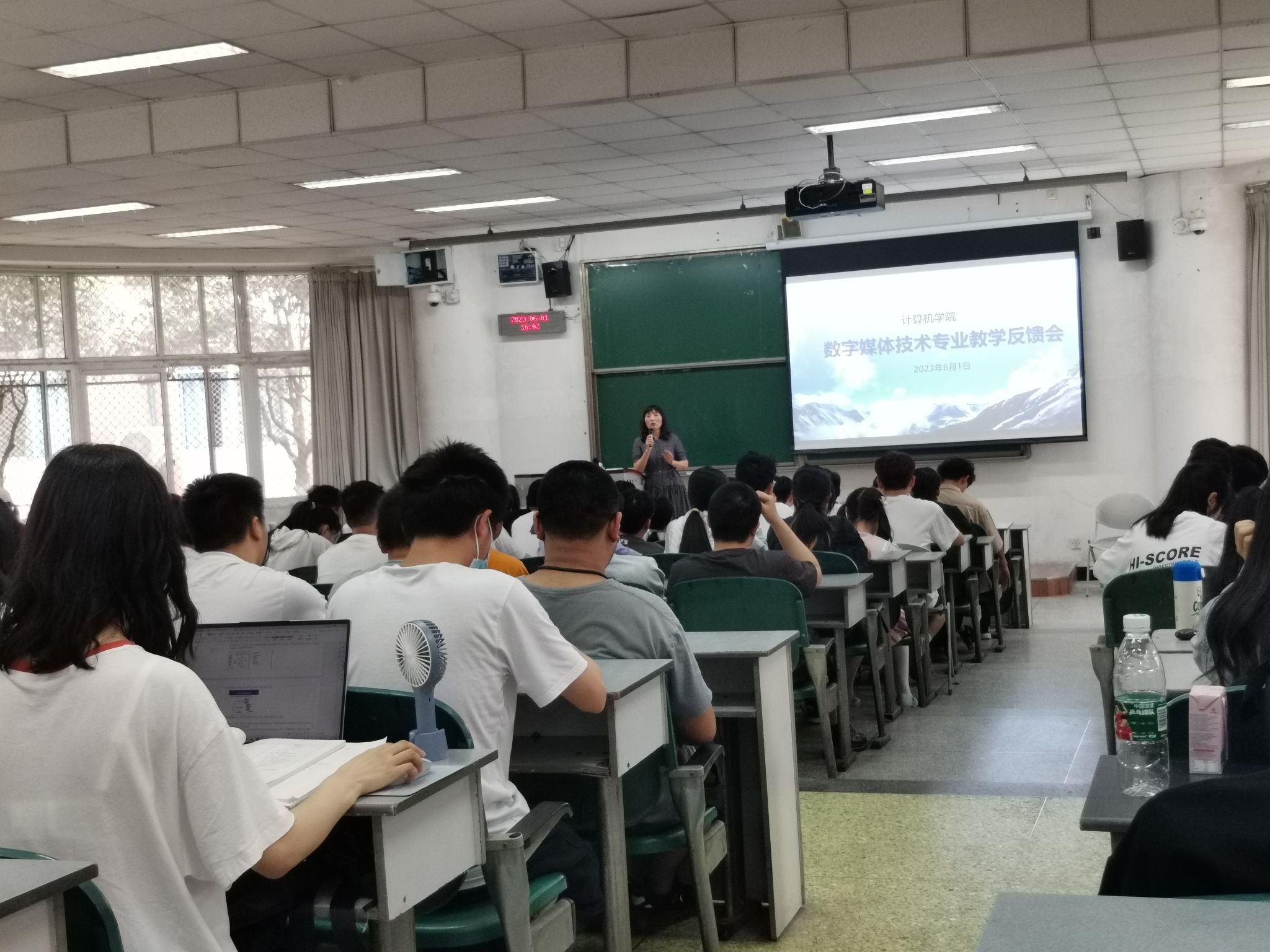 陈敏书记向全体参会员工介绍了学院通过《学情数据分析报告》《在校生学习体验报告》、员工座谈等渠道收集的与数字媒体技术专业相关的专业、课程、学习、学风情况,并表示,学院非常重视同学们的意见和建议,接下来会通过多种途径改善数媒各年级学习状况。