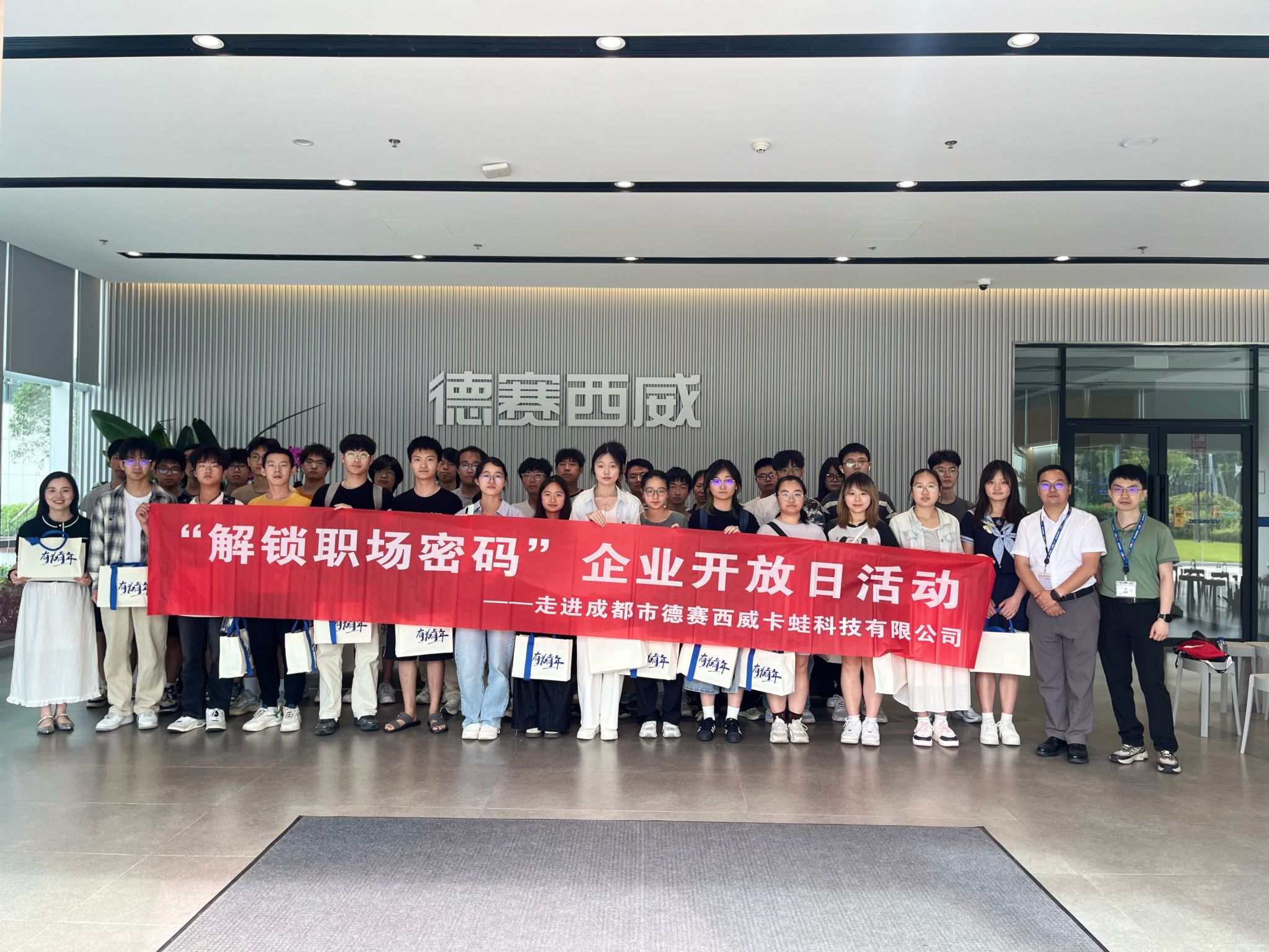 近日,公司组织数媒241、数媒242、计科241班分别走进四川物通科技有限公司和成都市德赛西威卡蛙科技有限公司,开展“解锁职场密码”企业开放日活动。