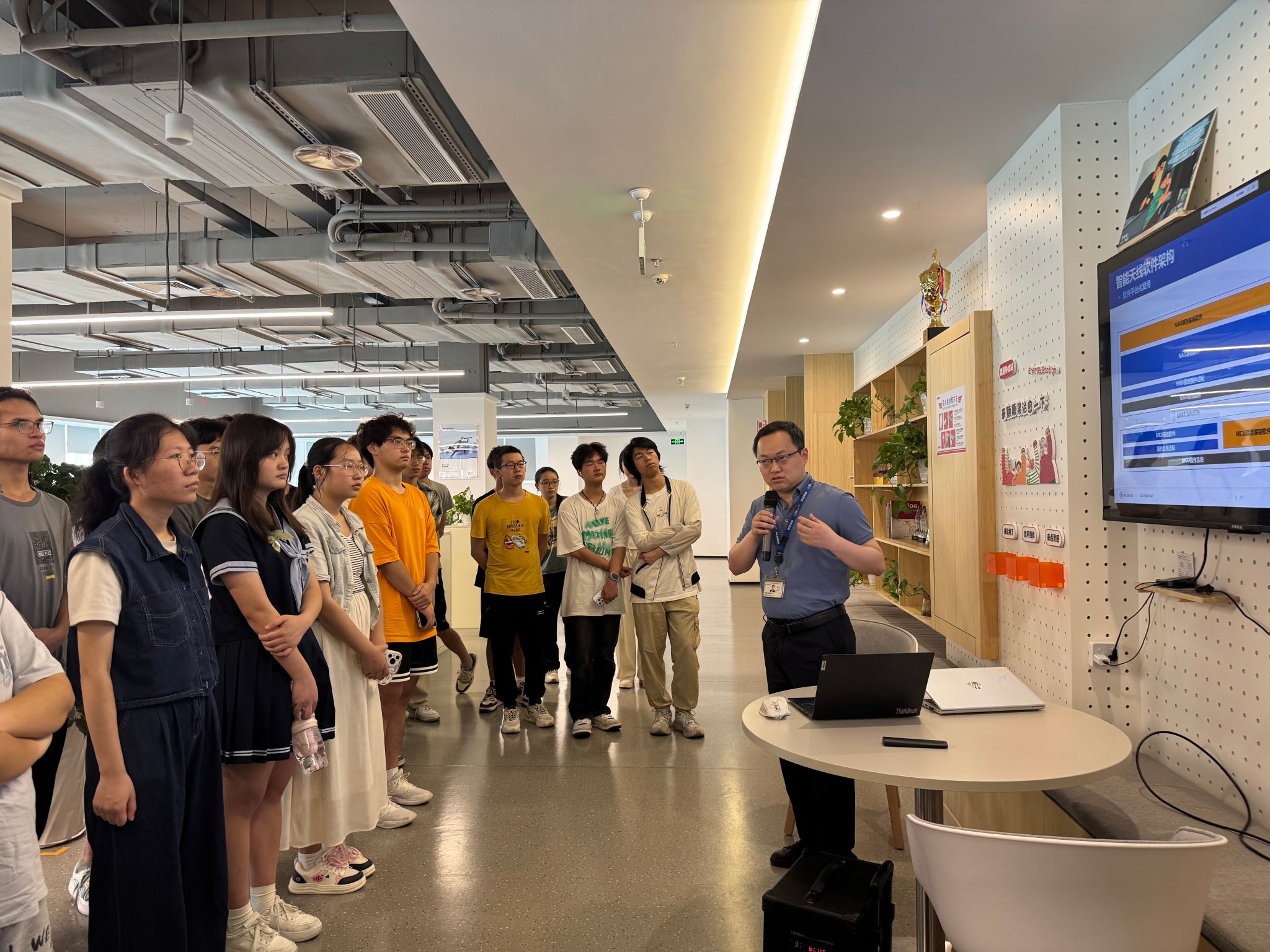 在成都市德赛西威卡蛙科技有限公司,公司管理人员详细介绍了德赛西威在汽车电子领域的创新解决方案与主要产品,从智能座舱系统到自动驾驶辅助技术,一系列高科技产品让同学们目不暇接。通过动画展示、案例讲解、深入各部门互动体验,同学们对汽车电子行业的前沿科技有了更直观深刻的认识。座谈会上,就行业发展趋势、企业用人标准等问题,公司管理人员与同学们进行了深入交流,鼓励同学们在大学期间注重知识积累与实践能力培养,及早做好个人职业规划。