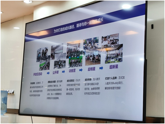 当天,同学们走进数天实验室,了解静态数字资产生产流程,全流程体验创造动态数字内容。并与业内大咖面对面交流,获取最新游戏行业技术发展趋势,了解游戏研发如何赋能文化艺术创新,与学长学姐互动交流,分享个人学习和发展经验。